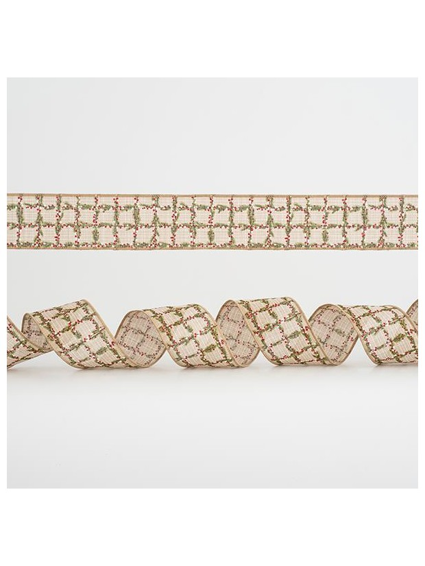 Κορδελα Μπεζ Καρο, με Κοκκινα και Πρασινα Σχεδια, 6,35cm, 10y