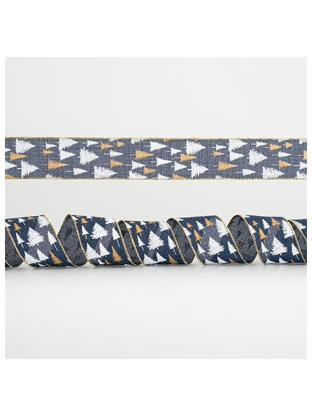 Κορδελα Μπλε, με Ασπρα και Χρυσα Δεντρα, 6,35cm, 10y