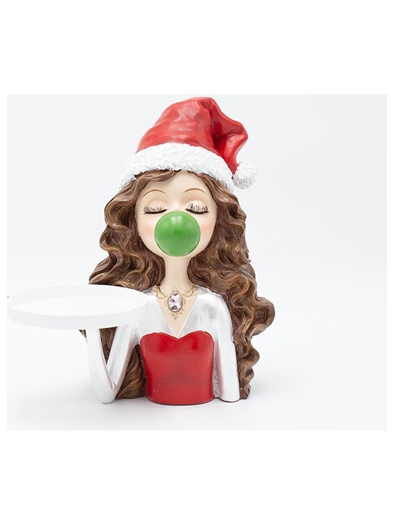 Κοριτσι Πολυρεζιν, με Τσιχλοφουσκα και Δισκο, 21x17x23cm