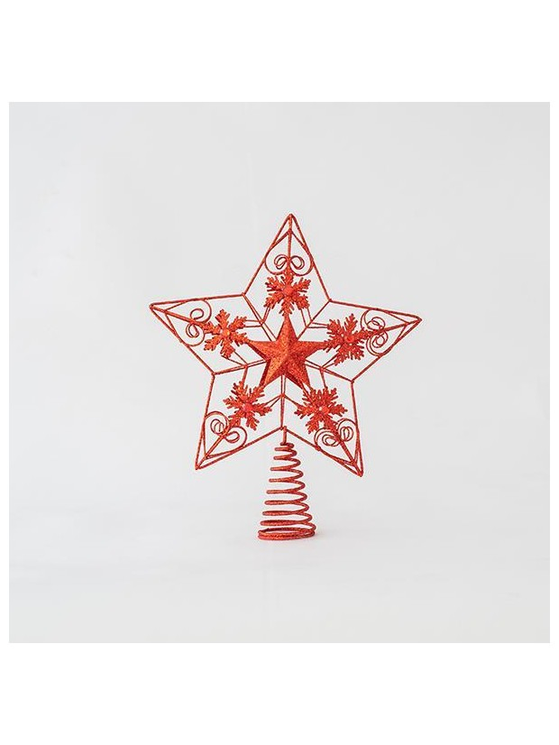 Κορυφη Δεντρου από Συρμα, Κοκκινο, Αστερι με Σχεδια, 30x25cm