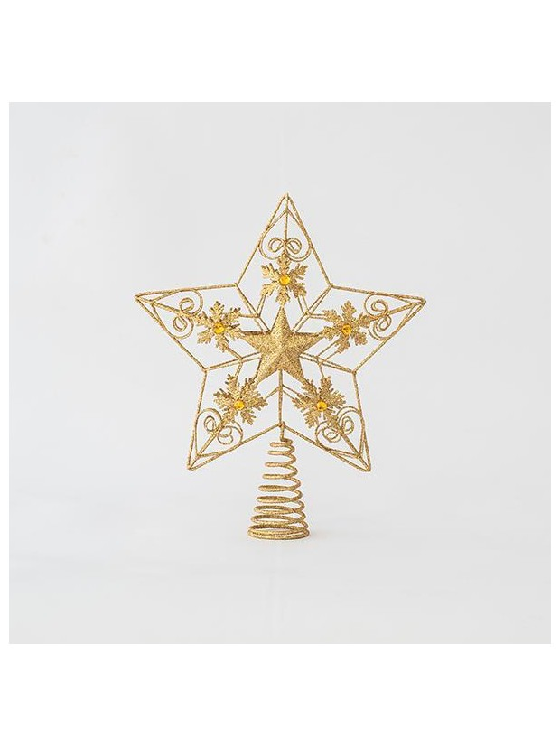 Κορυφη Δεντρου από Συρμα, Χρυσο, Αστερι με Σχεδια, 30x25cm