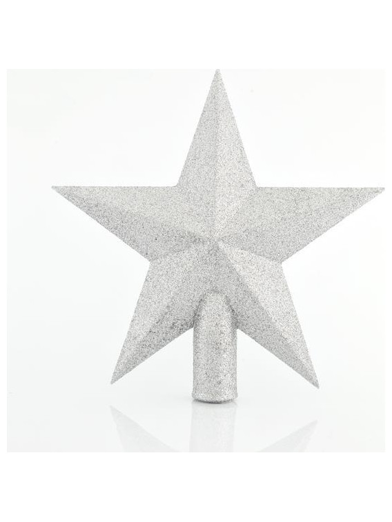Κορυφη Δεντρου Αστερι Πλαστικο, Ασημι με Glitter, 20,5cm