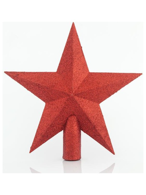 Κορυφη Δεντρου Αστερι Πλαστικο, Κοκκινο με Glitter, 20,5cm