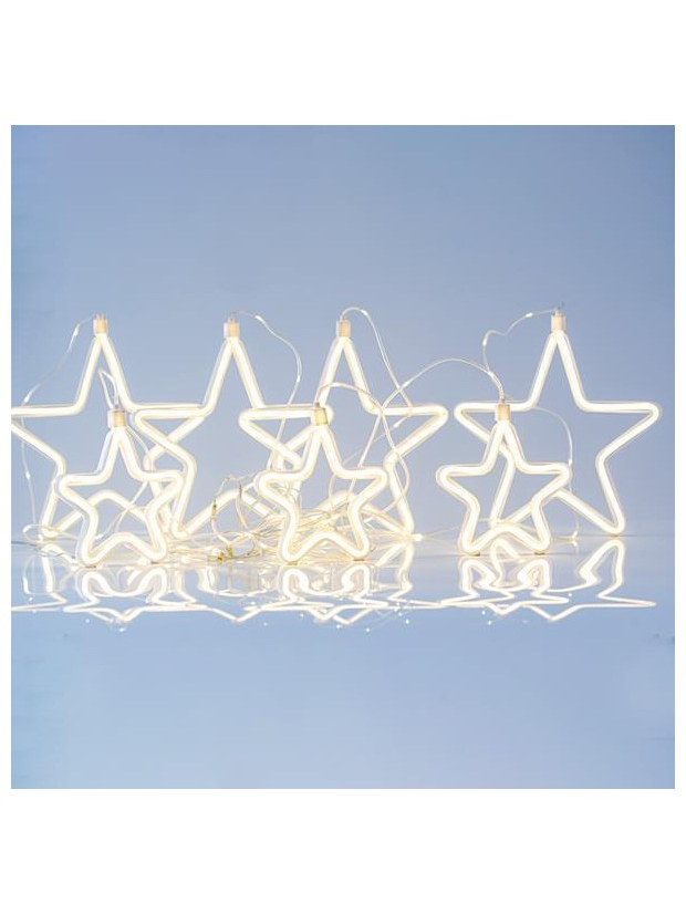 Κουρτινα, 47 Mini Led, 27v Μετασχηματιστη, με 4 Μεγαλα Αστερια 18cm και 3 Μικρα Αστερια 14cm με Neon Φωτοσωληνα, 4 Επεκτασεις εωσ 3 Σετ, Ασημι Χαλκινο Καλωδιο, Θερμο Λeυκο Led, Θερμη Λευκη Neon Φωτοσωληνα, (150x108cm), Προεκταση Παροχης 3m, Ip44