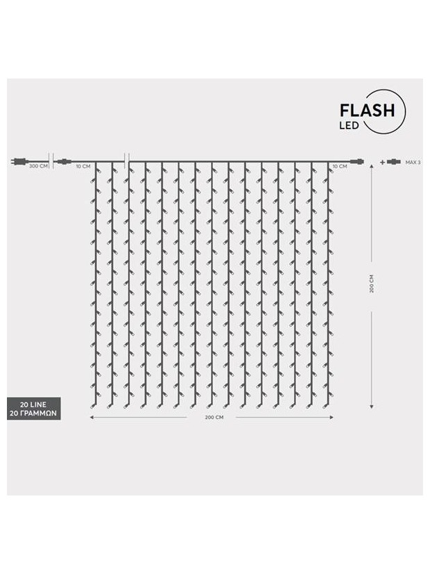 Κουρτινα,360 led 3mm,31v,επεκταση ωσ 3,μετασχημ/στη,προεκτ Παροχης 300cm,διαφ Καλωδιο,θερμο Led,40 Λευκα Flash Led,200x200cm,ιρ44