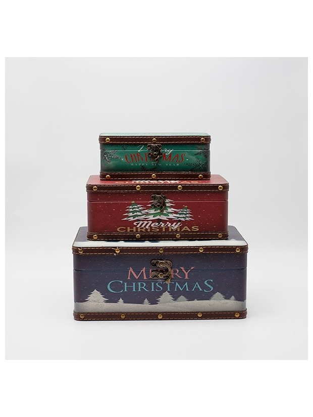 Κουτια Διακοσμητικα, με Χριστουγεννιατικα Σχεδια, Ξυλινα. σετ 3 Τμχ, 30x20x13, 25x15x10 και 20x10x8cm