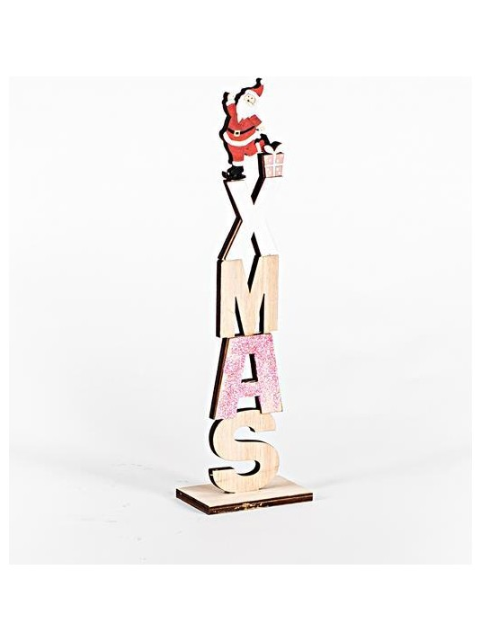 Ξυλινο Επιτραπεζιο Διακοσμητικο, Xmas, με Αγιο Βασιλη, 8x5x30cm