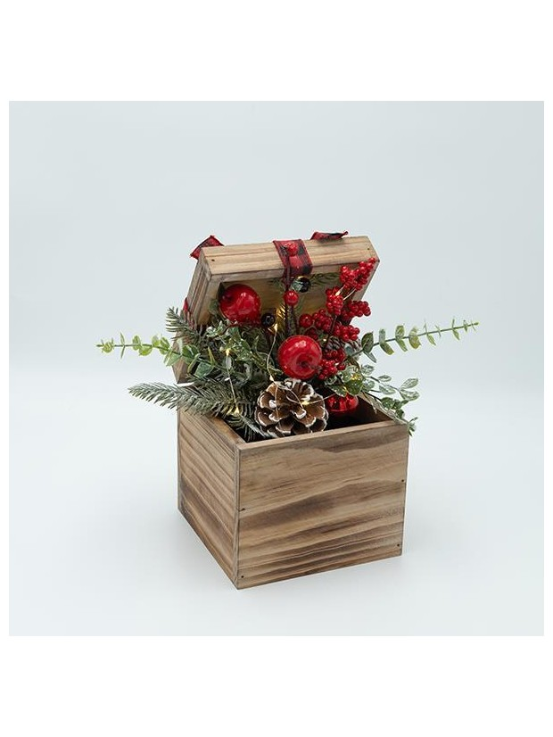 Ξυλινο Κουτι με Χριστουγεννιατικη Διακοσμιση, Φωτιζομενο, 17.50x26cm