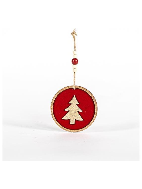 Ξυλινο Στολιδι, Δεντρακι, Κοκκινο, με Βελουδο, 11x0,5cm
