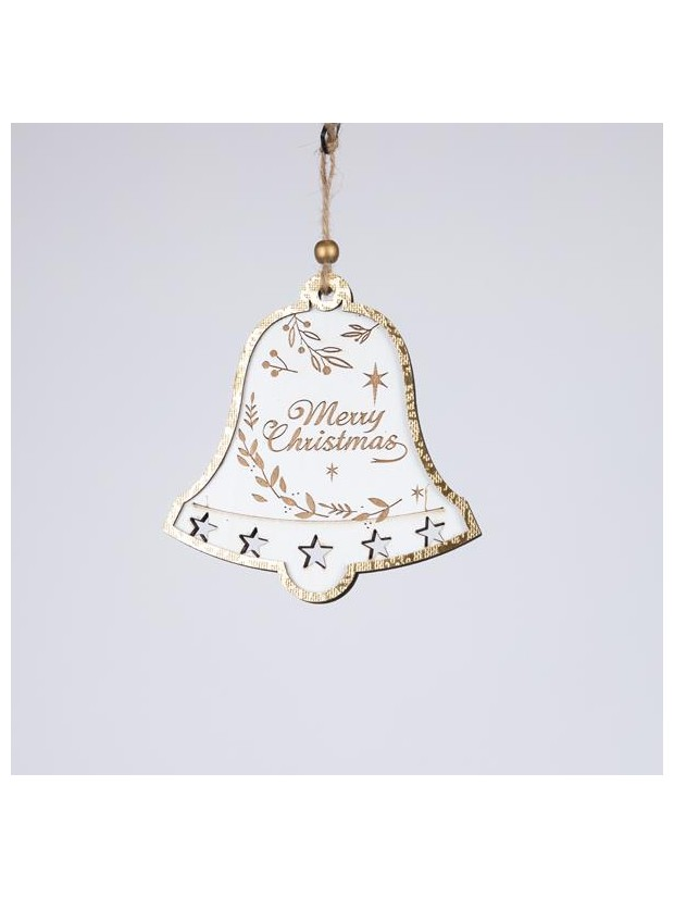 Ξυλινο Στολιδι Καμπανουλα, Λευκο με Χρυσο, 0.7x12.5x13cm