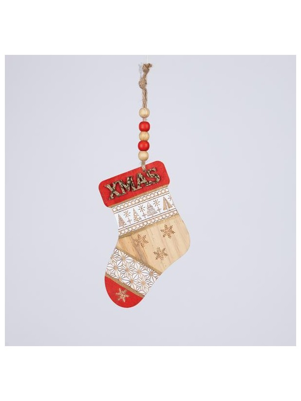 Ξυλινο Στολιδι Μποτουλα, Κοκκινη με Χρυσο Xmas, 0.8x8x24cm