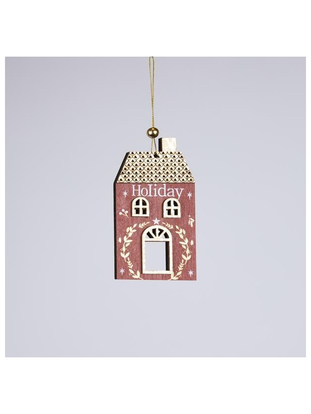 Ξυλινο Στολιδι Σπιτακι, Κοκκινο με Χρυσο, 0.5x7.5x13cm