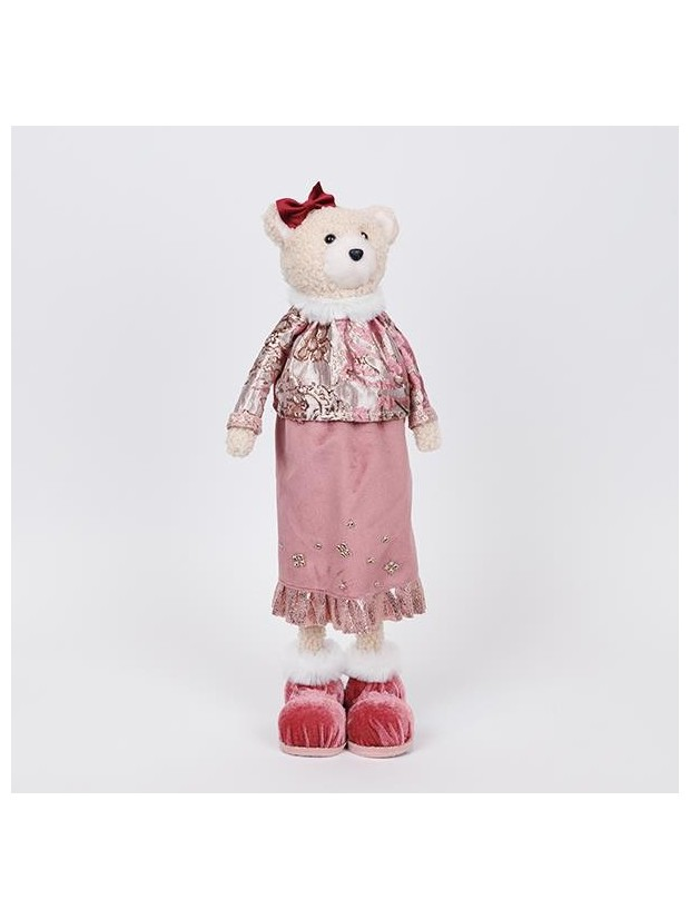 Κυρια Αρκουδα με ροζ Μπορντο Ρουχα και Φιογκο, 45cm