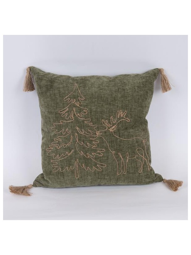 Μαξιλαρι Λαδι, με Χριστουγεννιατικο Δεντρο και Ελαφι, 45x45cm