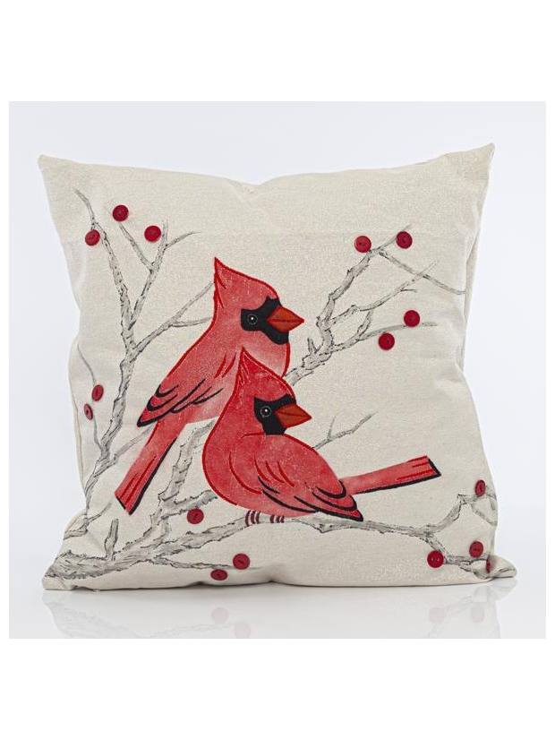 Μαξιλαρι Λευκο, με Κοκκινα Πουλακια, 41x41cm