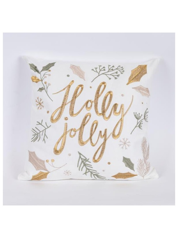 Μαξιλαρι Λευκο, με Χρυση Επιγραφη Holly Jolly, 45x45cm
