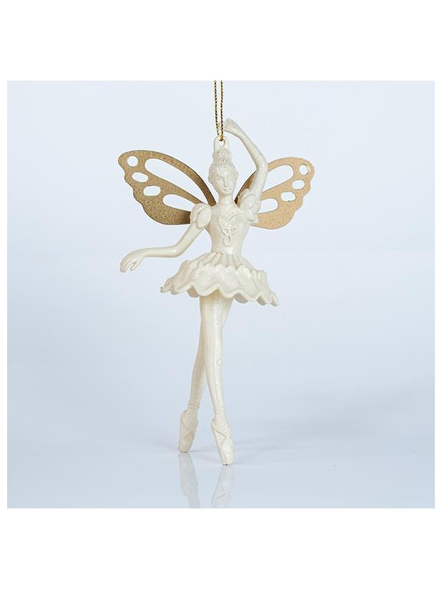 Νεραιδα Ακρυλικη, με Μπεζ Φτερα, με Glitter, 9,7x15,7cm