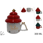 Χριστουγεννιάτικη κεραμική κούπα με καπάκι σε κόκκινο χρώμα 300ml