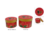 Χριστουγεννιάτικα κουτιά στρόγγυλα σε κόκκινο χρώμα σετ 2τμχ