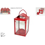 Χριστουγεννιάτικο μεταλλικό φανάρι σε κόκκινο χρώμα με τζάμι 13.5x7.5x7.5cm