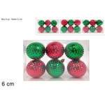 Christmas balls ornaments in green/red shiny color set 6pcs 6cm