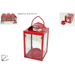 Christmas metal lantern in red with glass 13.5x7.5x7.5cm