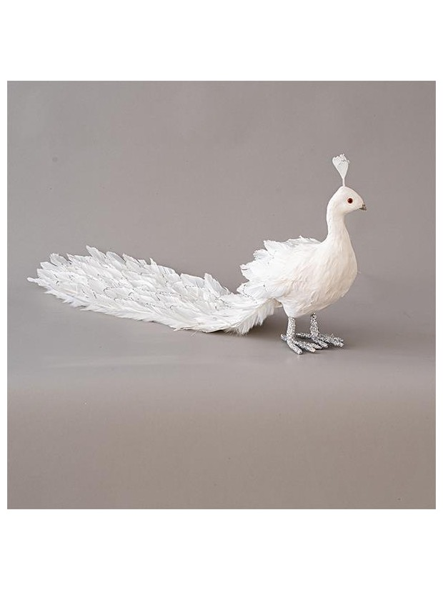 Παγωνι Λευκο, με Glitter και Πουπουλα, 80cm