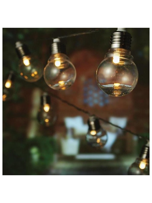 Party Led, 20 led με Πλαστικους Διαφανους Γλουμπους 5cm, 31v Adaptor, Διαφανο Καλωδιο, Θερμο Λευκο Led, Προεκταση Παροχης 1m, ανα 20cm, Ιρ44
