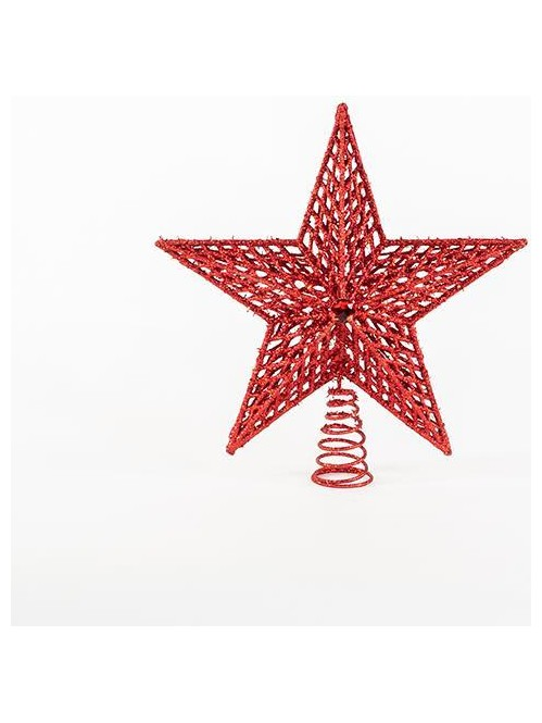 Πλαστικη Κορυφη Δεντρου, Glitter, Κοκκινο, 29,5x33cm