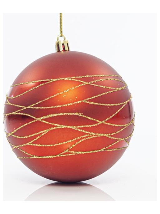 Πλαστικη Μπαλα Κοκκινη, με Χρυσα Διακοσμητικα, σετ 4τμχ, 10cm