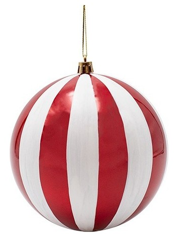 Πλαστικη Μπαλα, Κοκκινη Περλα με Λευκες Ριγες, σετ 2τμχ, 15cm