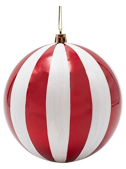 Πλαστικη Μπαλα, Κοκκινη Περλα με Λευκες Ριγες, σετ 2τμχ, 20cm