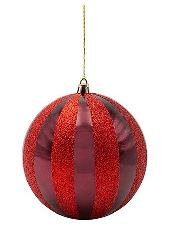 Πλαστικη Μπαλα, Μπορντο με Κοκκινο Glitter, σετ 6τμχ, 10cm