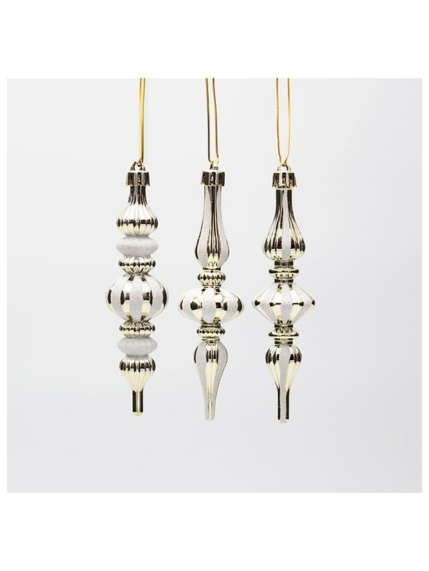 Πλαστικος Σταλακτιτης, Χρυσο με Λευκο, σετ 3τμχ, 13cm