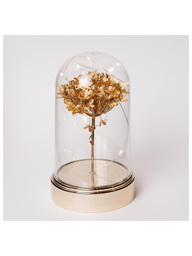 Πλαστικος Θολος H20cm, Φ11cm, Μπαταριας 3xaa, Χρονοδιακοπτης, 10 Θερμα Λευκα Led, Ασημένιο Χαλκινο Καλωδιο, Χρυσο Λουλουδι Ορτανσια, Ip20