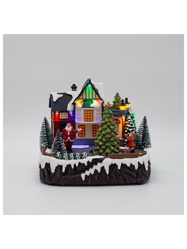 Πλατεια, με Αγιο Βασιλη και Χριστουγεννιατικο Δεντρο, με φωσ και Κινηση, Μπαταριας, 20x15x17.2cm