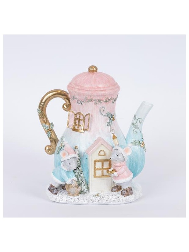 Πολυρεζιν Τσαγιερα, ροζ με Ποντικακια , 11.5x14.5x15.5cm