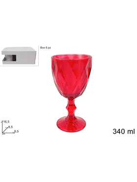 Ποτήρι για κρασί γυάλινο σετ 6τμχ σε κόκκινο χρώμα 340ml