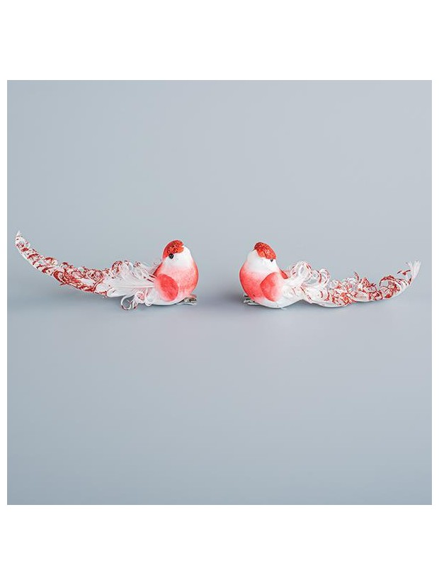 Πουλακι Κοκκινο, με Λευκα Πουπουλα, 12x5cm