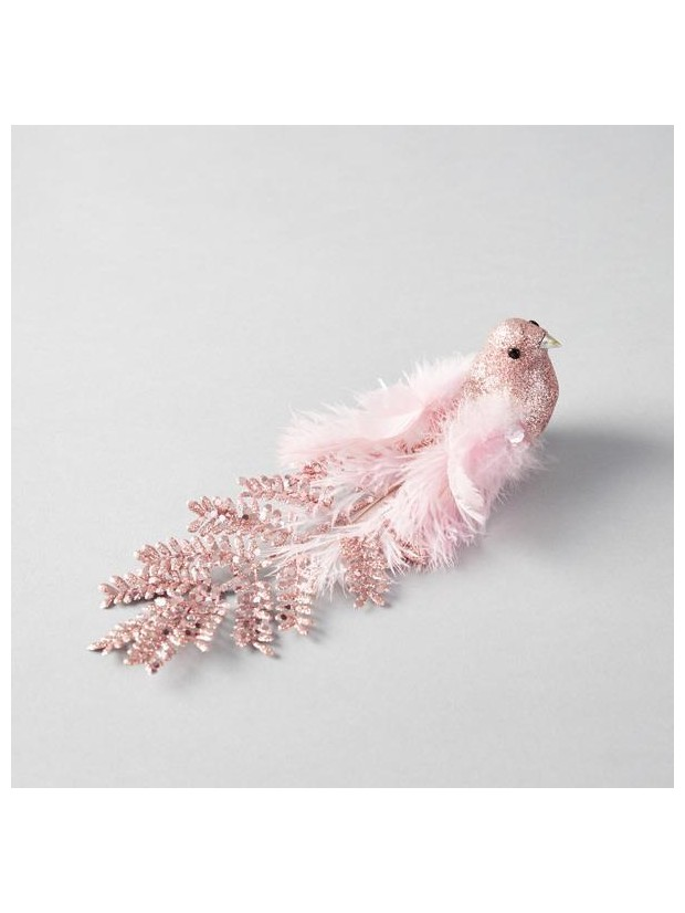 Πουλι Ροζ, με Πουπουλα και Glitter, 24x5x6,5cm