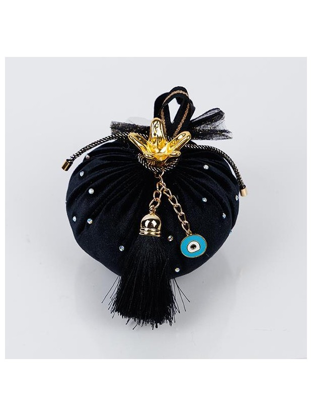 Ροδι, Βελουδινο, Μαυρο, με Χρυσες Λεπτομερειες, 10cm