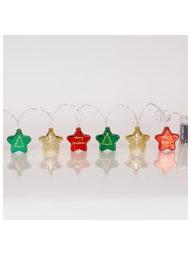 Σειρα, 10 led 5mm, με Πλαστικα Αστερια Πολυχρωμα,, Μπαταριας 3xaa, Timer, Διαφανο pvc Καλωδιο, Θερμο Λευκο Led, ανα 10cm, Προεκταση Παροχης 30cm, Ip20