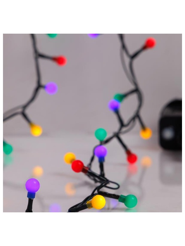 Σειρα, 100 led 3mm, Χρωματιστες Μπαλιτσες 0.9cm, 31v Μετασχηματιστη, 8 Προγραμματα & Μνημη, Πρασινο pvc Καλωδιο, Χρωματιστο led ανα 3cm, Προεκταση Παροχης 3m, Ip44