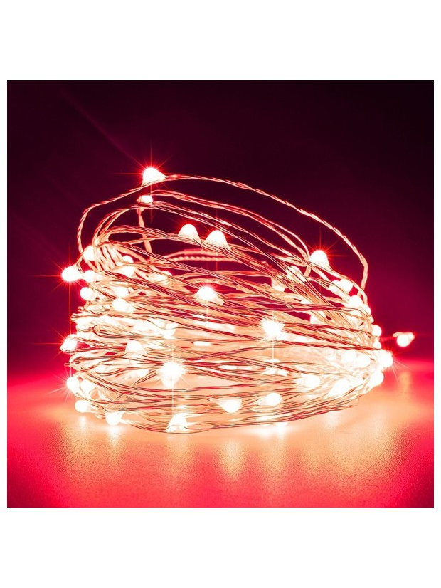 Σειρα, 100 Mini Led, 4,5v Μετασχηματιστη, Σταθερο, Ασημι Χαλκινο Καλωδιο, Κοκκινο Led, ανα 10cm, Προεκταση Παροχης 5m, Ιρ44