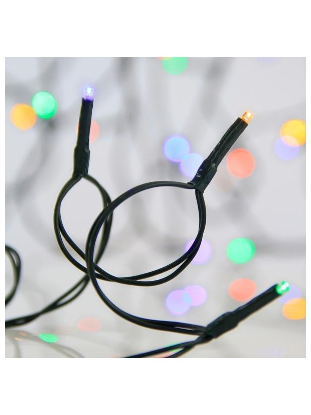 Σειρα, 480 led 3mm, 31v Μετασχηματιστη, Σταθερο, Πρασινο pvc Καλωδιο, Πολυχρωμο Led, ανα 7,5cm, Προεκταση Παροχης 3m, Ip44