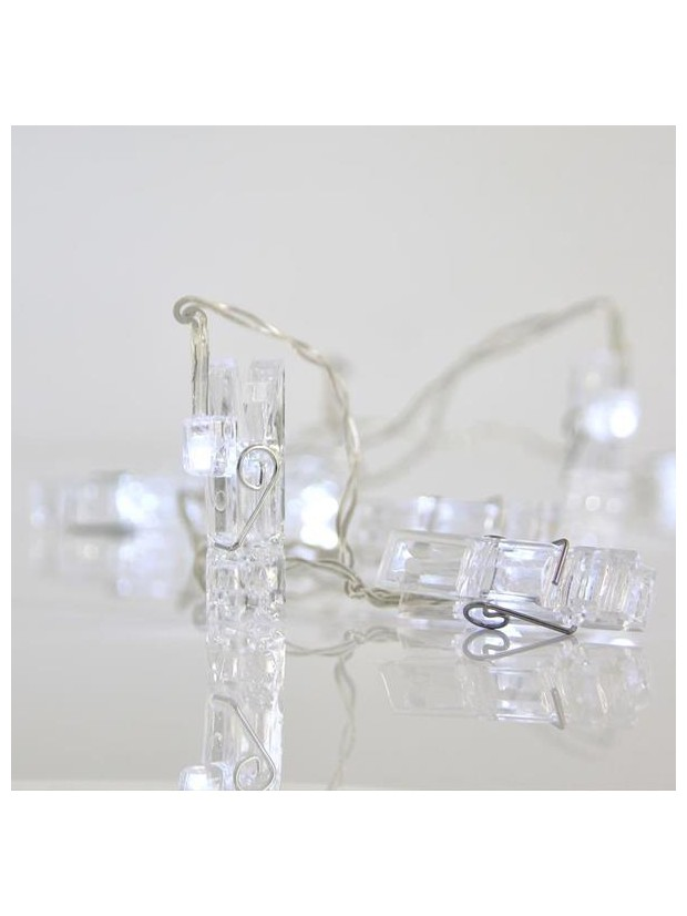 Σειρα Μπαταριας, 10 led 5mm, Λευκα με Πλαστικα Μανταλακια, Προεκταση Παροχης 50cm, ανα 15cm, Ip20