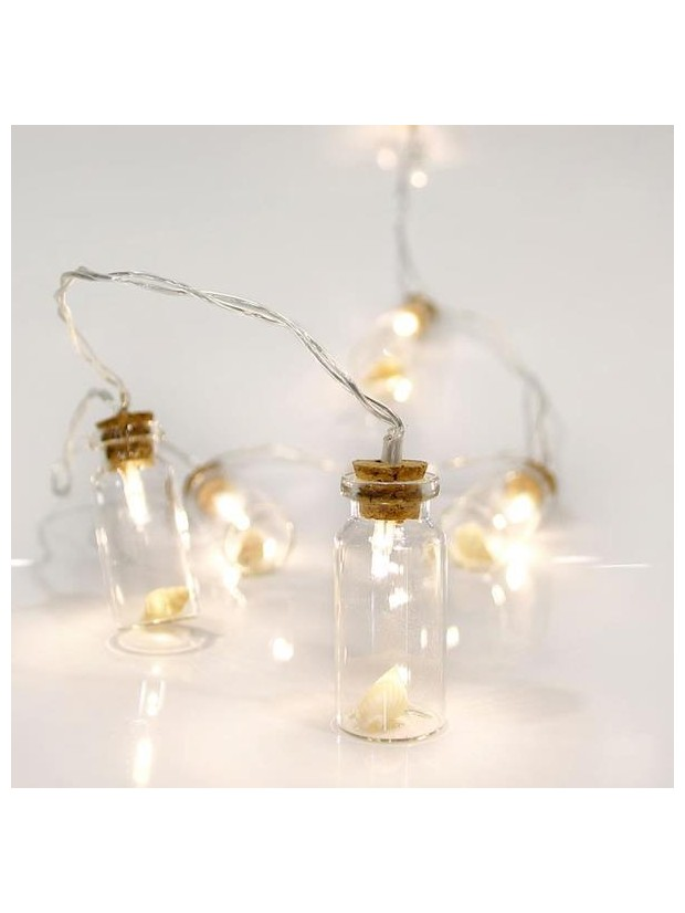 Σειρα Μπαταριας, 10 led 5mm, Προεκταση Παροχης 50cm, Θερμα Λευκα με Γυαλινα Βαζακια, ανα 15cm, Ip20