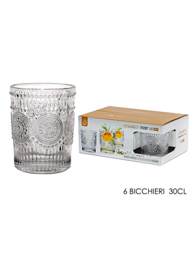Γυάλινα ποτήριανερού με σκαλιστό σχέδιο σετ 6τμχ 300ml