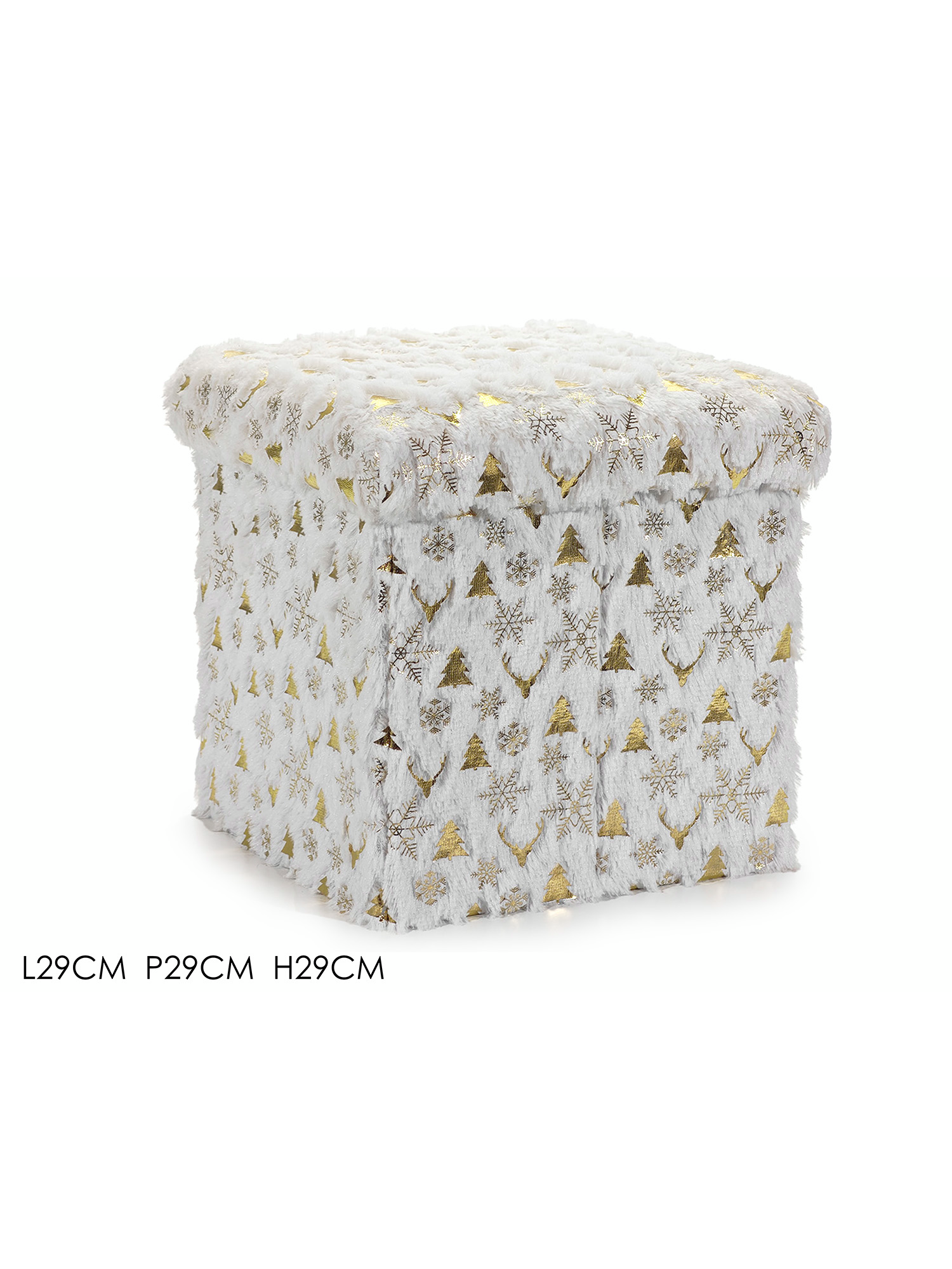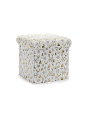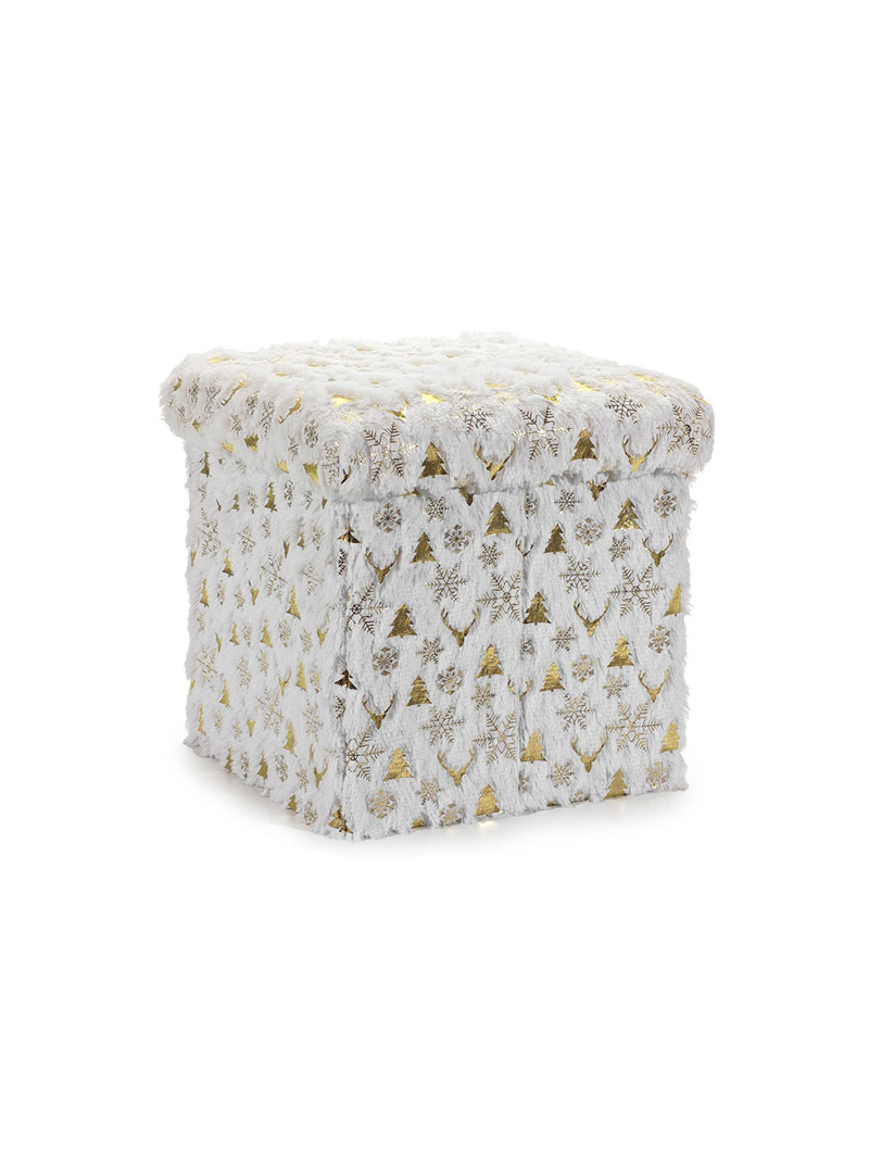 Σκαμπώ γούνινο με διαστάσεις 29x29cm σε λευκό με χρυσό χρώμα