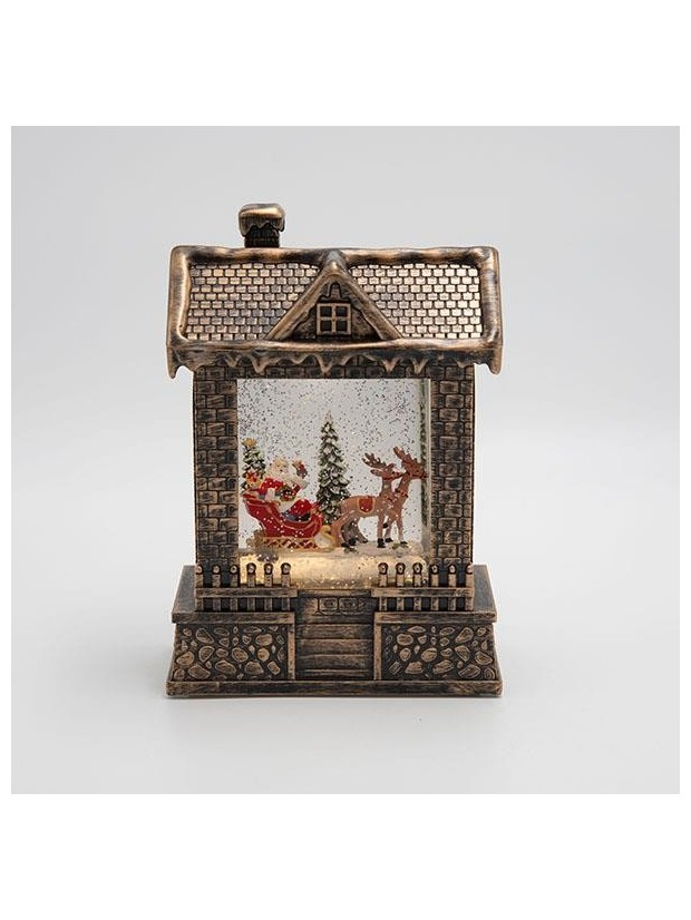 Σπιτακι με Αγιο Βασιλη και Ελκυθρο, με Νερο στο Εσωτερικο, Φωτιζομενο, Μπαταριας, Timer, 15x8x21.5cm